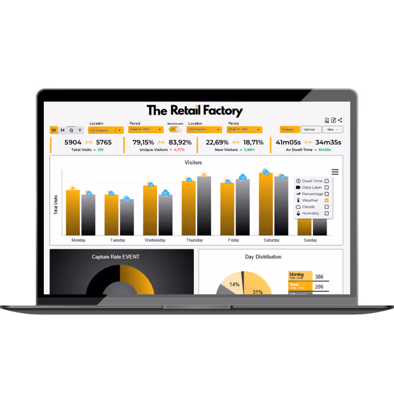 Dankzij onze innovatieve slimme lichtreclame met ingebouwde AI-technologie bieden we unieke inzichten in het volledige traject: passanten die je winkel passeren, stoppende bezoekers, instromend verkeer en het gedrag van bezoekers daarna.